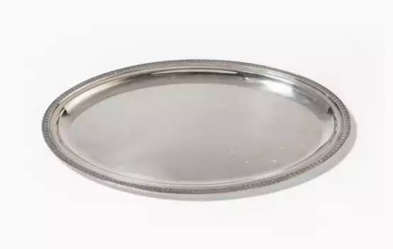 Silber. Ovale Form mit Palmettenbordüre. Garantiemarke, Feingehalt 800. 32x20,5 cm, ca. 410 g.