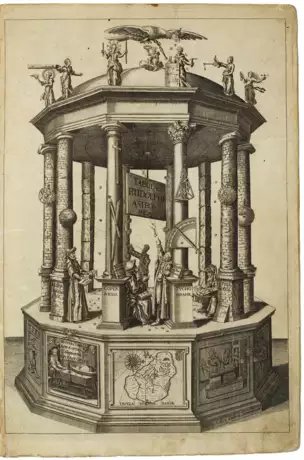 The fine engraved frontispiece, a superlative example of the genre, was designed by Kepler himself and executed by Georg Celer. It depicts the Temple of Urania inhabited by great astronomers of the past, with Copernicus and Brahe front and center; Kepler himself is in a downstairs room, working. A few copies have additionally a world map which was published posthumously (although the map is dated 1630, all copies known today must have been issued considerably later, certainly after 1658 when the Emperor Leopold to whom the map is dedicated came to the throne). Caspar 79; Houzeau and Lancaster 12754; Lalande p. 190; Norman 1208; Sparrow 116. See Owen Gingerich, “Johannes Kepler and the Rudolphine Tables” in Sky and telescope, 42 (1971), pp 328-33 (reprinted in The Great Copernicus Chase, 1992) for more on the frontispiece and Gingerich, “Johannes Kepler and the New Astronomy,” Quarterly Journal of the Royal Astronomical Society v 13 (1972)