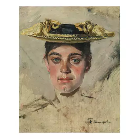 According to the information given by the previous owners, the sitter is the adopted daughter of the artist Josef Wopfner (1843-1927).