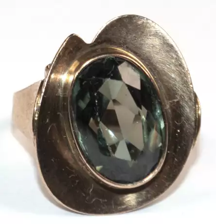 Лот 835 | Turmalin-Ring, 333er GG, besetzt mit oval facettiertem Turmalin in Zargenfassung, Ges.-Gew. 5,16 g, RG 52
