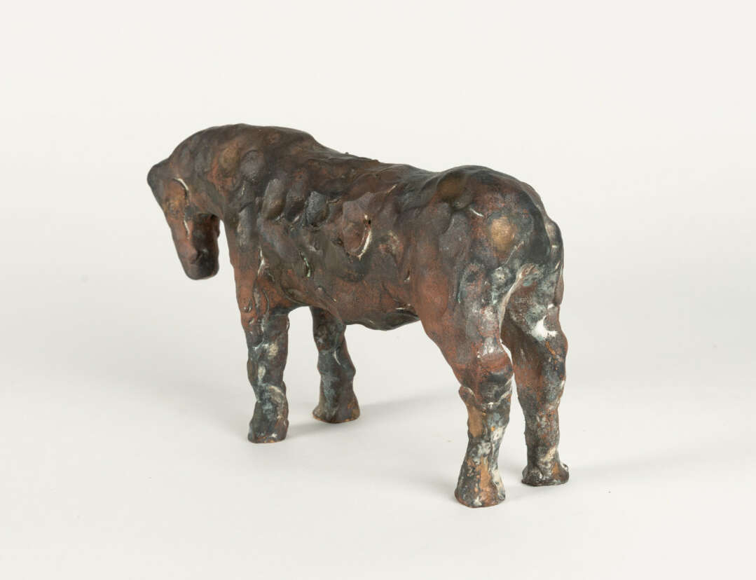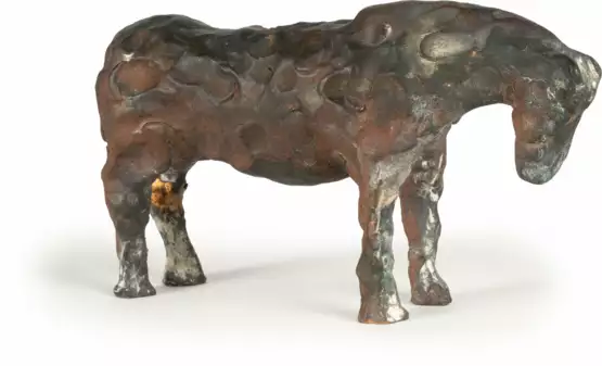 Bronze with red-brown patina. (2013). Approx. 14.5 x 26 x 6 cm. One of only 3 numbered copies. Titled in red on the underside of the horse's belly.