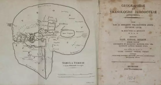 Mundt 3889. - Seltene Hochschulschrift. Das Kupfer mit einer Weltkarte nach Herodot. - Stockfleckig.