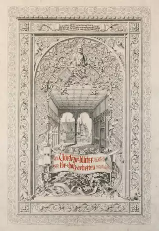 Zeigt Entwürfe für Kollosal-Grabmäler im neugotischen Stil. - Tls. stark fleckig. - ╔Dabei: Ders.╗ Vorlegeblätter für Holzarbeiten. Ebda. Fol. Gest. Titel u. 48 gest. Taf. 2 Bl., 48 Sp.