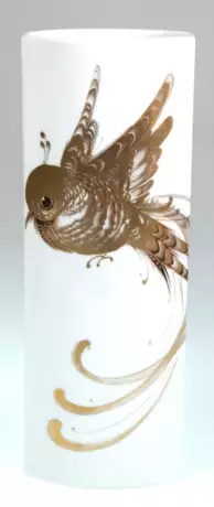 Лот 439 | Vase, Fürstenberg, West-Germany, gedrückter zylindrischer Korpus beidseitig mit goldfarbenem Vogelmotiv, H. 32,5 cm