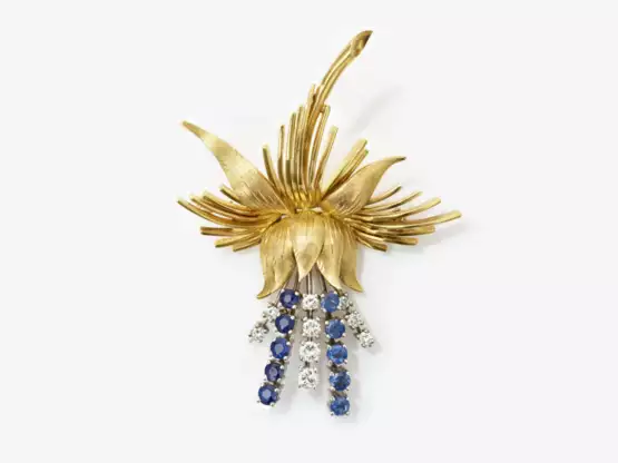 Лот 148 | A convertible floral vintage brooch set with sapphires and brilliant-cut diamonds