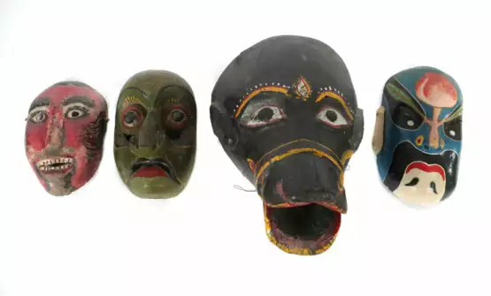 Лот 2651 | Vier farbig bemalte Masken 20. Jh., 1x Papiermaché-Maske Japan, Männer…