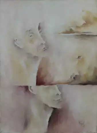 Лот 988 | Vogel, A. (XX) - Abstraktion mit Gesichtern, 1975,…