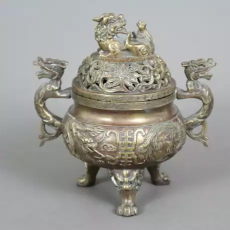 Лот 762 | Weihrauchbrenner - China, Metall bronziert, kugeli…