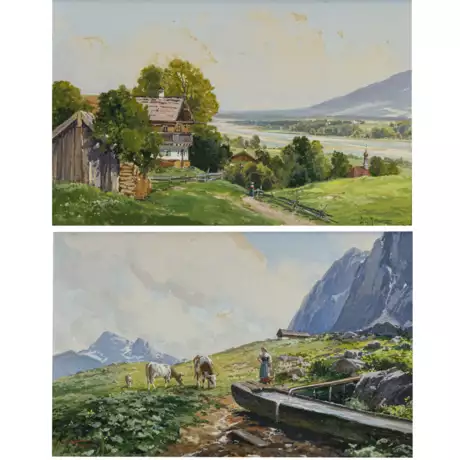 Signed and each inscribed with the place name München lower right / lower left. Gouache on thin cardboard. 24.5 x 38 cm. Framed (40.5 x 55 cm).