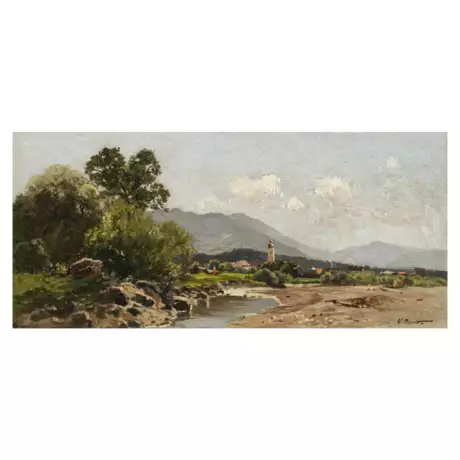 Signed lower right. Oil on cardboard. 22 x 44.5 cm. Restored. Framed (36 x 48.5 cm).