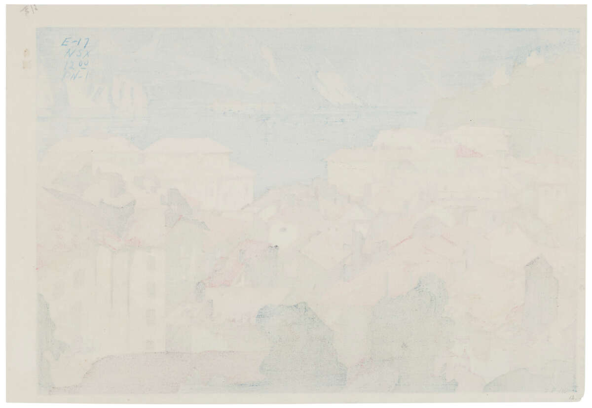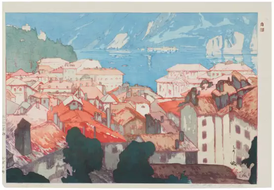 Woodblock print, signed Yoshida and sealed, on right margin sealed Jizuri (self-printed), dated 1925