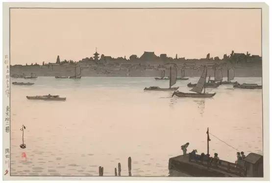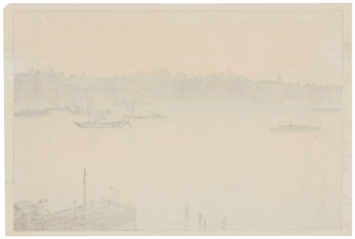 Woodblock print, from the series Tokyo junidai (Twelve scenes of Tokyo), signed Yoshida and sealed, on left margin sealed jizuri (self-printed), dated 1926