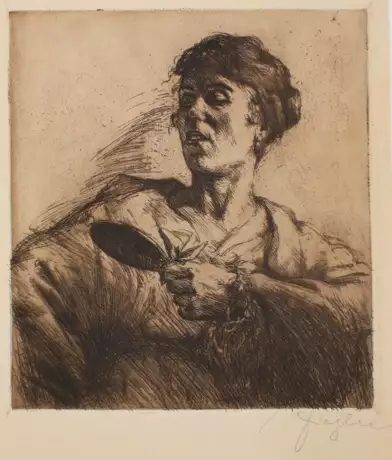 (1891 Pforzheim 1992). Dame mit Spiegel. Kaltnadelradierung mit Plattenton, um 1920/30. 21,7 x 19,5, Blgr. 25,5 x 21,7 cm. Sign. Ränder beschnitten.