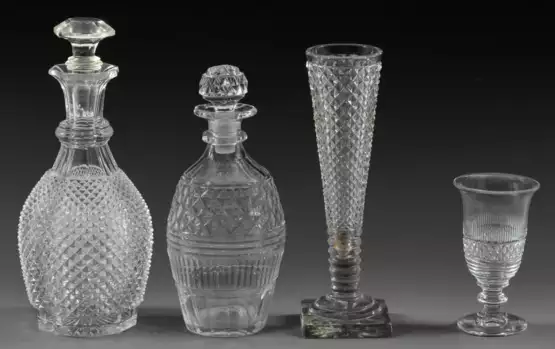 Лот 322 | Zwei Karaffen, Weinflöte und Vase im Biedermeierstil