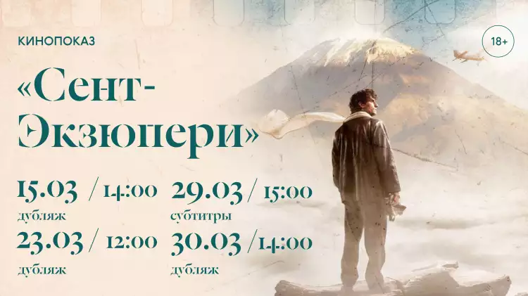 15 марта в «Кинолектории» музея-заповедника «Архангельское» стартуют показы фильма «Сент-Экзюпери», который можно будет посмотреть с субтитрами на языке оригинала (на французском) и в дубляже.